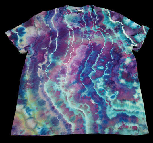 2XL Cotton T-Shirt - Purple Pink Flowy Side Spirals